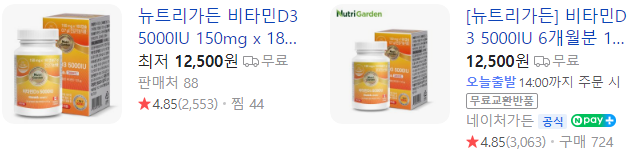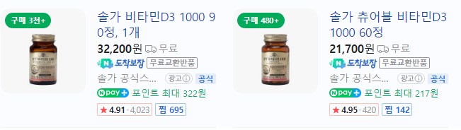 비타민 D 제품 비교, 추천 순위